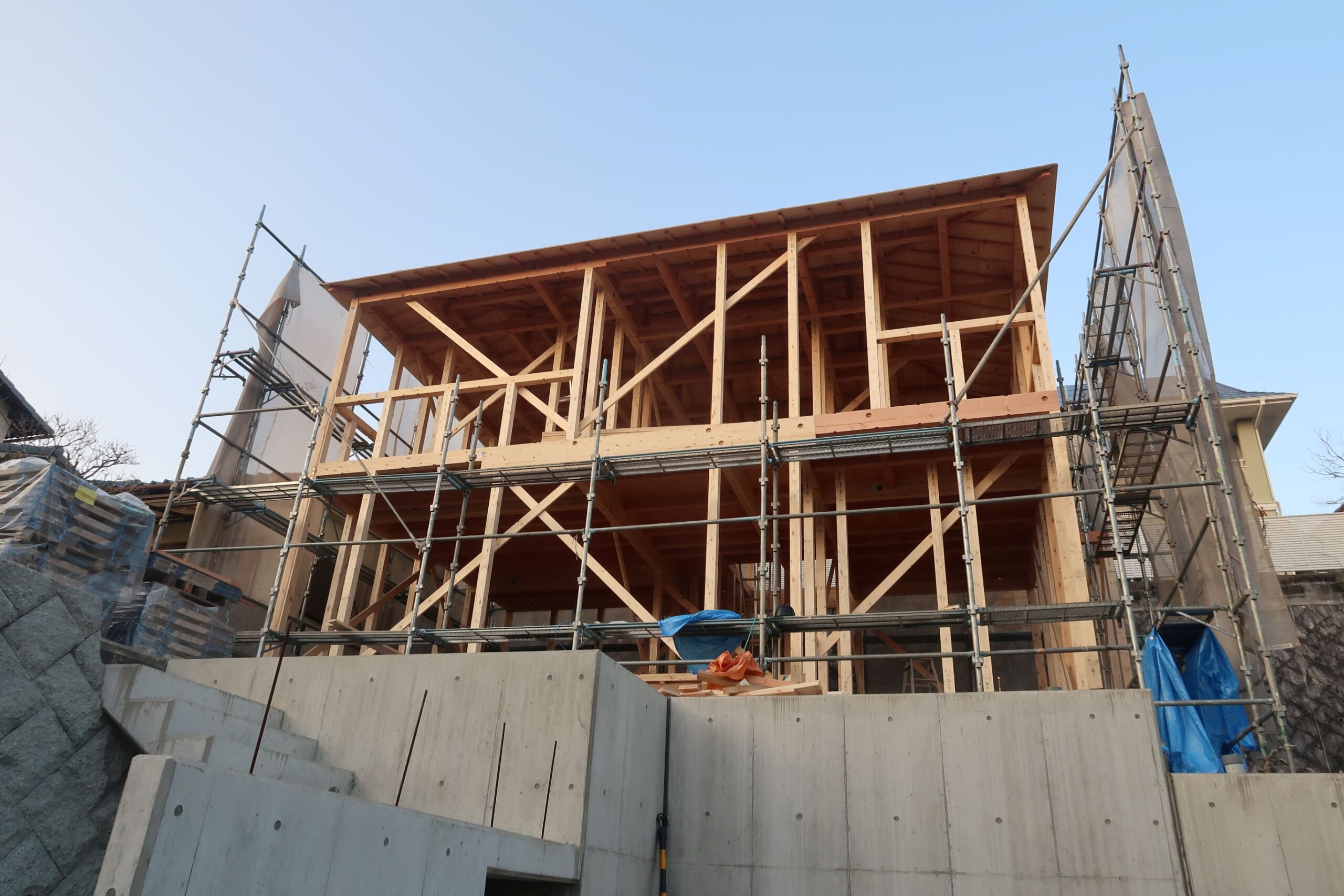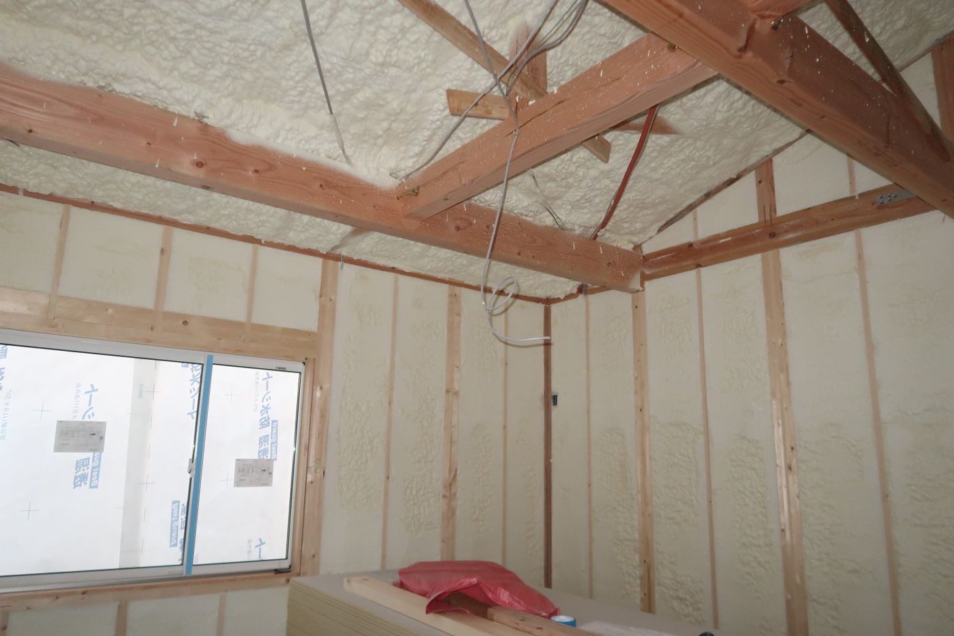 少し前の撮影 断熱材や構造材が見えております